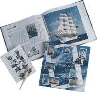 | Ter gelegenheid van "Sail 2000 Amsterdam" werd het vierde Davo thema-boek uitgebracht. Op 21 augustus bracht de Nederlandse PTT een speciaal velletje uit met 10 van de mooiste zeilschepen. Elk van de 10 schepen wordt in dit boek uitgebreid beschreven en afgebeeld. Hiernaast ziet u bijvoorbeeld het Portugese zeilschip "Sagres II" en hieronder het in Nederland gebouwde zeilschip de "Oosterschelde". |