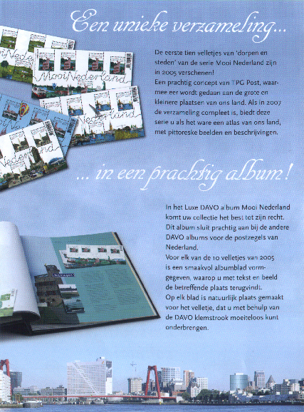 De beslissing van TPG-Post om ook in 2006 en 2007 telkens 10 velletjes Mooi Nederland uit te geven, heeft Davo op het idee gebracht hiervoor een speciaal album te maken. In een mooi geïllustreerd album, wordt telkens in full colour per bladzijde met tekst en uitleg een plaats beschreven. Het album wordt geleverd met de 10 bladen voor het opbergen van de velletjes van 2005. Vanzelfsprekend voorzien van klemstroken. Eind 2006 en eind 2007 komen de twee supplementen uit voor de volgende reeks van telkens 10 velletjes.