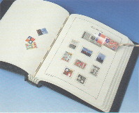 aan een alleszins aanvaardbare prijs: · Stevige (170 grams zware) bladen van zacht creme-wit kartonpapier. · Afgeronde hoeken (geen ezelsoren). · In "SF-uitvoering" voorzien van ontspiegelde klemstroken gemaakt van weekmakervrije folie. · Diverse blanco bladen voor het opzetten van een speciale verzameling. | ![]() |