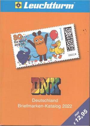 | 23-12 | Leuchtturm-DNK catalogus 2022 verschenen De Leuchtturm-DNK Duitsland is een uitstekend alternatief voor de niet meer verschijnende Philex catalogus. Op 863 bladzijden geeft deze catalogus een volledig overzicht van alle Duitse zegels (met Michel nummers): Oud Duitse Staten, Duitse Rijk, Saarland, Bezettingszegels 1e en 2e wereldoorlog en natuurlijk DDR, Berlijn en de Bondsrepubliek Duitsland. En dat alles voor de vrij lage prijs van 12,95 euro. catalogi ![]() |
