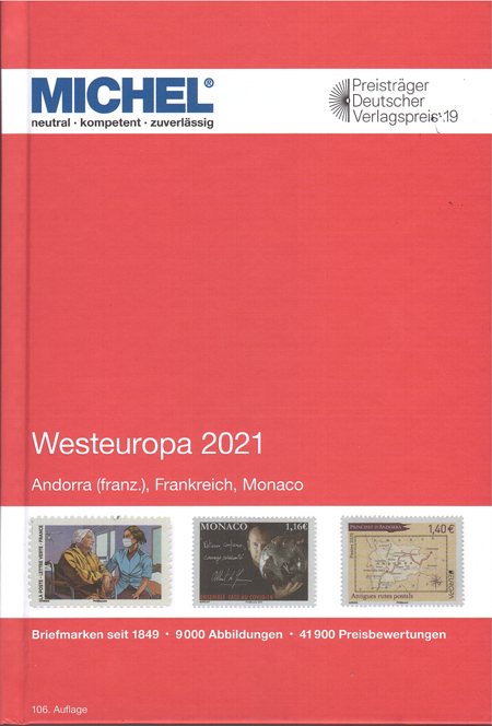 | 04-05 | Michel West Europa, Iberisch schiereiland en German Reich zijn verschenen Van de nieuwe Michel reeks Europa zijn deze week de delen 3 en 4 verschenen. Het zijn: West-Europa 2021 (deel 3) met Frankrijk, Frans Andorra en Monaco. catalogi ![]() en het deel: Iberische schiereiland 2021 (deel 4) met Portugal, Spanje en Spaans Andorra. catalogi ![]() Tegelijkertijd verscheen ook de eerste editie van de Michel German Reich, in het Engels. Dit is de eerste Engelstalige Duitsland catalogus in een reeks van 4. De andere 3 delen verschijnen in juli, oktober en december. catalogi |