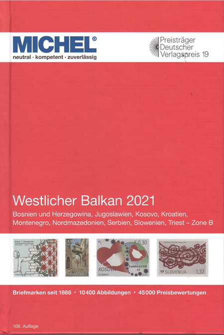 | 11-06 | Michel Apennijns schiereiland en Westelijke Balkan zijn verschenen Van de nieuwe Michel reeks Europa verschenen in mei de delen 5 en 6. Deel 5, Apennijns schiereiland met Fiume, Italië, San Marino, Triëst-Zone A en Vaticaan. Deel 6, met de Westelijke Balkan, bevat Bosnië Hercegovina, Joegoslavië, Kosovo, Kroatië, Montenegro, Noord Macedonië, Servië, Slovenië en Triëst-Zone B. catalogi ![]() ![]() |