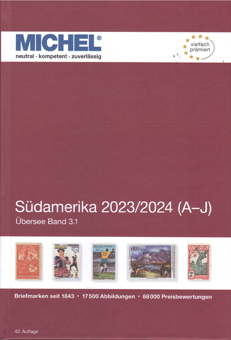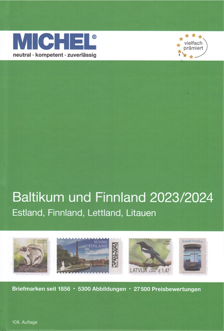 | 29-09 | Michel Finland en Baltische Staten, Michel Benelux en Michel Zuid Amerika A-J zijn verschenen De delen 11 en 12 van de nieuwe Michel reeks Europa zijn in september verschenen. Het zijn: Baltische Staten en Finland 2023/2024 (deel 11) met Aland, Finland, Estland, Letland en Litouwen. catalogi ![]() en het deel: Benelux 2023/2024 (deel 12) met België, Luxemburg en Nederland. catalogi ![]() Tegelijkertijd verscheen ook het werelddeel 3.1 "Zuid Amerika A-J". Hierin o.a.: Argentinië, Bolivia, Brazilië, Chili en Guyana. ![]() |