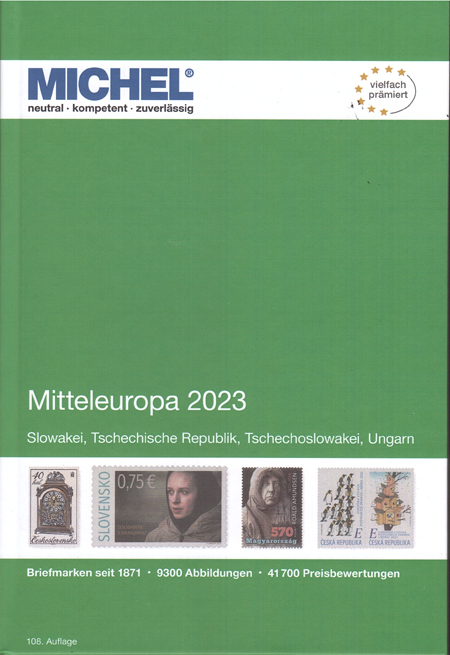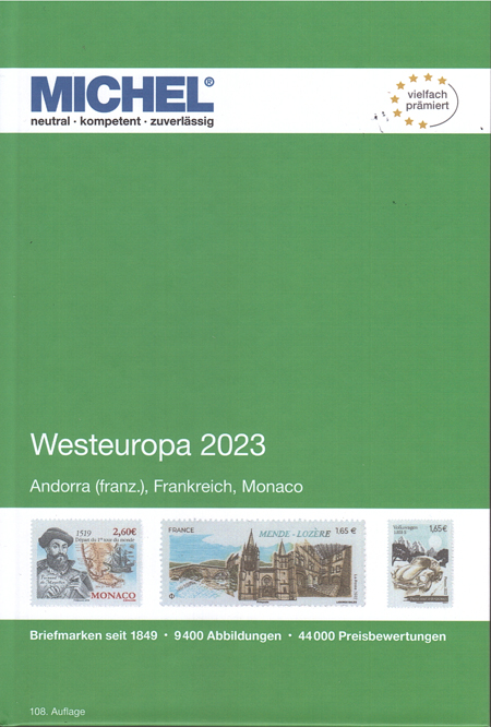 | 01-05 | Michel West Europa, Iberisch schiereiland en Duitsland speciaal deel 1 zijn verschenen Van de nieuwe Michel reeks Europa zijn half april de delen 3 en 4 verschenen. Het zijn: West-Europa 2023 (deel 3) met Frankrijk, Frans Andorra en Monaco. catalogi ![]() en het deel: Iberische schiereiland 2023 (deel 4) met Portugal, Spanje en Spaans Andorra. catalogi ![]() Ook verschenen deel 1 van de Michel Duitsland speciaal (tot 1945), editie 2023. Deel 2 verschijnt in mei. catalogi |