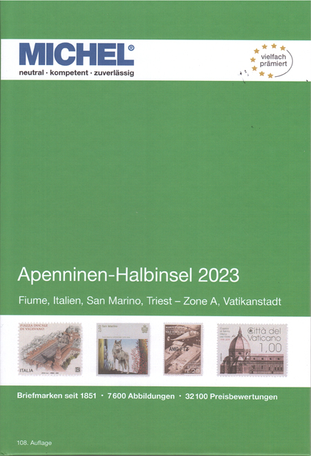 | 06-09 | Michel Duitsland, Middellandse Zeegebied en Scandinavië verschenen half juli Het deel Middellandse Zee landen 2023/24 (deel 9) bevat: Gibraltar, Grieks en Turks Cyprus, Malta en Turkije. catalogi In het 10e deel van Europa Michel Scandinavië, editie 2023/2024 zijn, met uitzondering van Finland, alle Scandinavische landen opgenomen: Denemarken, Fär Öer, Groenland, Noorwegen, IJsland en Zweden. catalogi ![]() In juli verscheen ook de nieuwe Michel Duitsland, editie 2023/2024. catalogi ![]() |
