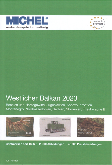 | 29-06 | Michel Apennijns schiereiland en Westelijke Balkan zijn verschenen Van de nieuwe Michel reeks Europa verschenen in mei de delen 5 en 6. Deel 5, Apennijns schiereiland met Fiume, Italië, San Marino, Triëst-Zone A en Vaticaan. Deel 6, met de Westelijke Balkan, bevat Bosnië Hercegovina, Joegoslavië, Kosovo, Kroatië, Montenegro, Noord Macedonië, Servië, Slovenië en Triëst-Zone B. catalogi ![]() ![]() |