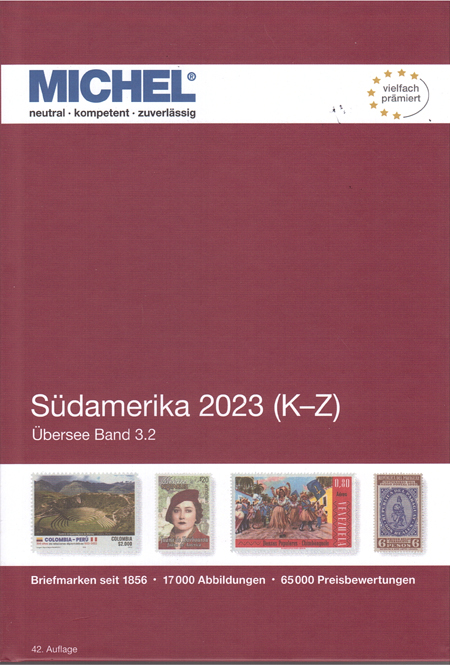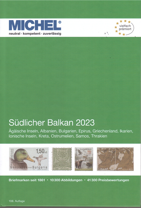| 30-06 | Michel Zuidelijke Balkan, Zuidoost-Europa, Zuid Amerika deel 2 en Duitsland speciaal deel 2 zijn verschenen De delen 7 en 8 van de nieuwe Michel reeks Europa zijn onlangs verschenen. Het zijn: Zuidelijke Balkan 2023 (deel 7) met Albanië, Bulgarije, Egeïsche eilanden, Epirus, Griekenland, Icarië, Ionische eilanden, Kreta, Oost-Roemelië, Samos en Thracië. catalogi ![]() en het deel: Zuidoost-Europa 2023 (deel 8) met Moldavië en Roemenië. catalogi ![]() Tegelijkertijd verscheen ook het werelddeel 3.2 "Zuid Amerika 2023, K-Z". Hierin o.a.: Colombia, Panama, Paraguay, Peru, Uruguay en Venezuela. catalogi ![]() Tenslotte was er ook de 2023 editie van de Michel speciaal catalogus Duitsland deel 2. |