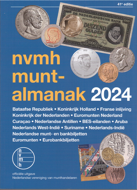 | 28-09 | Muntalmanak 2024 verscheen ook in september De 41 e editie van deze voor de munt- en bankbiljettenverzamelaar onmisbare catalogus is weer uitgebracht. Naast het complete overzicht van de guldenmunten vanaf 1795 zijn in deze catalogus ook alle Nederlandse bankbiljetten opgenomen plus de euromunten (en bankbiljetten) van alle eurolanden. Kortom 497 bladzijden zeer nuttige informatie, voor niet meer dan 24,95 euro. catalogi ![]() |