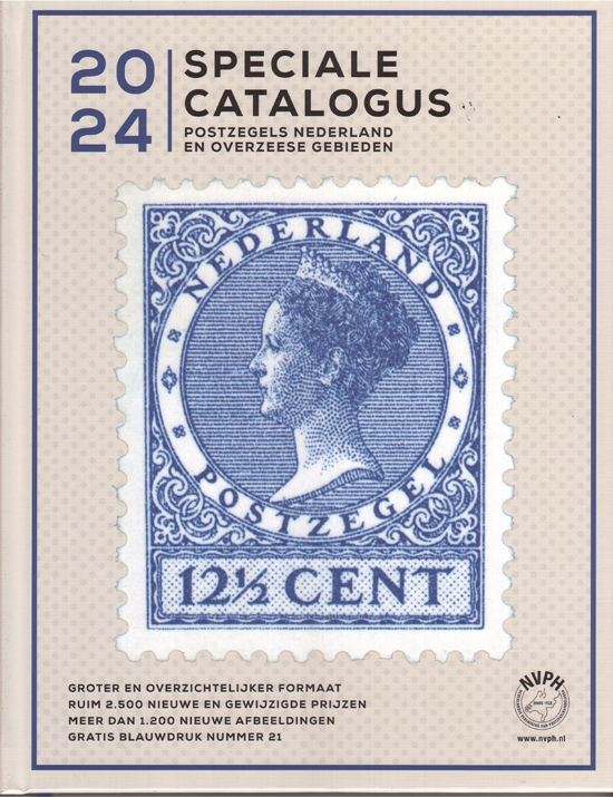 | 08-09 | NVPH Speciale catalogus 2024 verschijnt 12 september Het was ook nu weer een extra jaartje wachten (vorig jaar verscheen de 3e editie van de compacte catalogus Nederland), maar dan heb je ook wel weer een aardig boekwerk. Dit keer in een geheel nieuwe uitvoering: een GROTER FORMAAT (28 x 22 cm.). Wellicht iets minder handzaam, maar veel overzichtelijker, met name door de 3 kolommen per bladzijde. Ook dit keer geen catalogus met de Plaatfouten van Nederland en Overzeese Rijksdelen, maar wel de opname van de zogenaamde mailers (grootverpakkingen van 30, 50 of 100 zegels). Bovendien ongeveer 1.800 nieuwe zegelafbeeldingen toegevoegd (t.o.v. editie 2022). Ook dit jaar wordt met de catalogus een nieuwe Blauwdruk (nr. 21) meegeleverd. Het gaat om de 20 cent uit Veth-serie uit 1925 (nr. 156). catalogi ![]() ![]() |