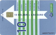 Van de 1e en de 4e f 10,00-kaart bestaan 2 uitvoeringen, herkenbaar aan: >verschillende chip >kleinere pijl welke de insteekrichting aangeeft |