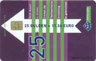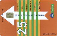 Van de f 25,00-kaart bestaan 2 uitvoeringen, herkenbaar aan: > verschillende chip > kopstaande achterzijde > glanzende of matte coating |