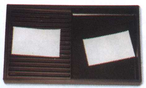Speciaal ontworpen plastic bakje om met behulp van wasbenzine watermerken in zegels goed zichtbaar te maken.